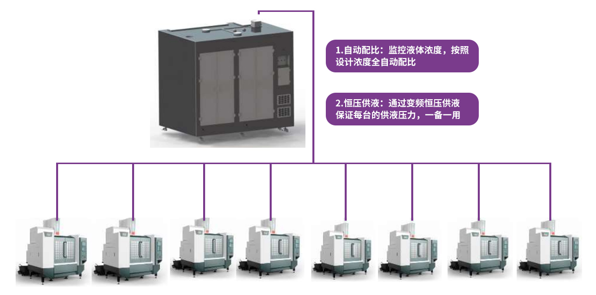 可有效解决目前机床补液需人工配液、添加到每台机床所造成的乳化液浓度不统一,加工成品率降低的问题。